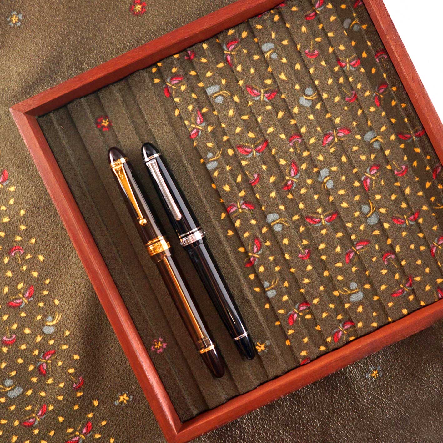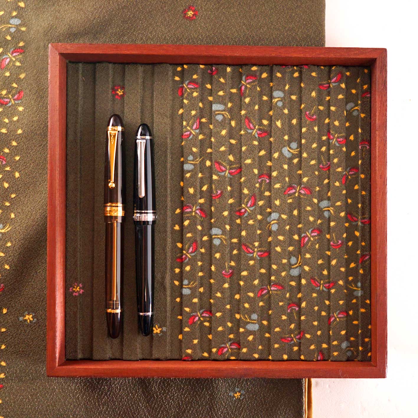Kiri (Paulownia wood) pen tray with vintage kimono insole.