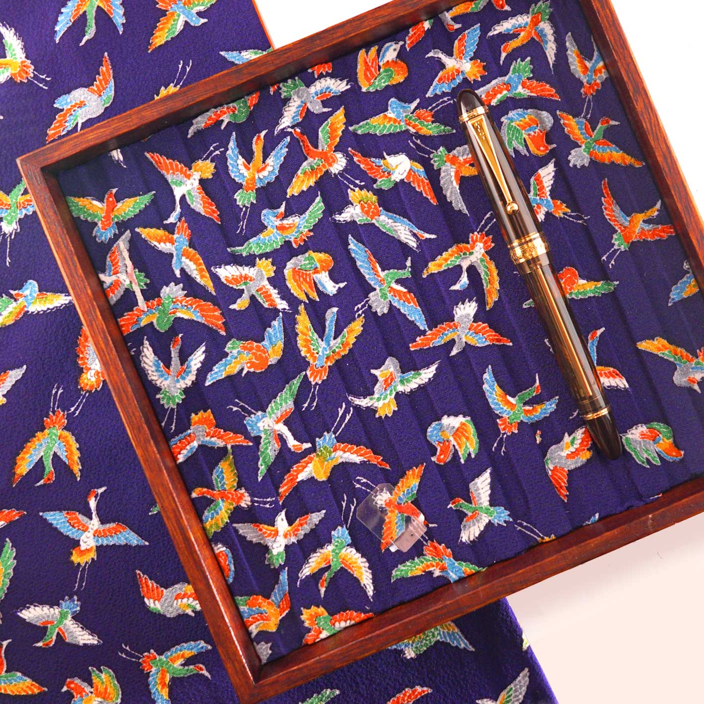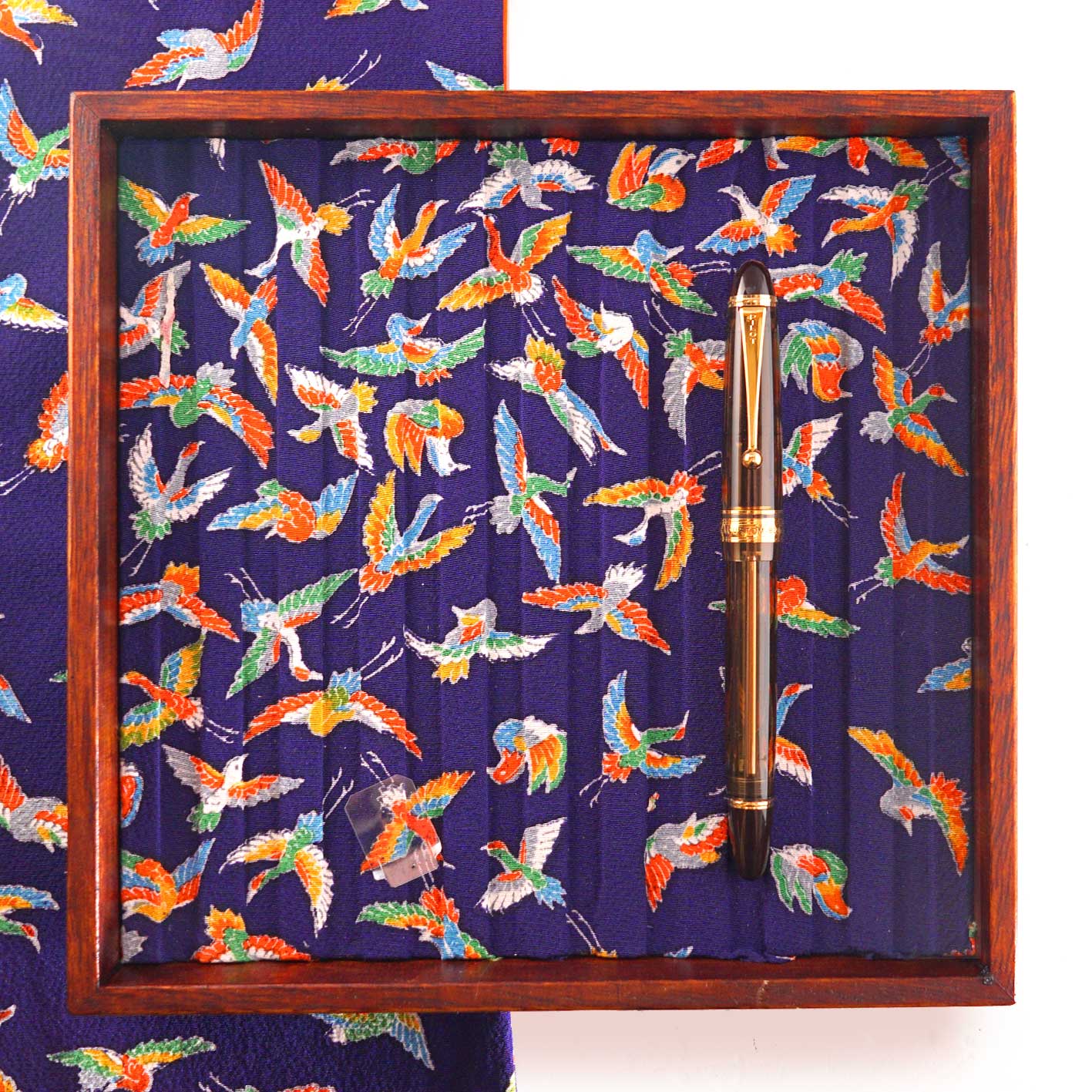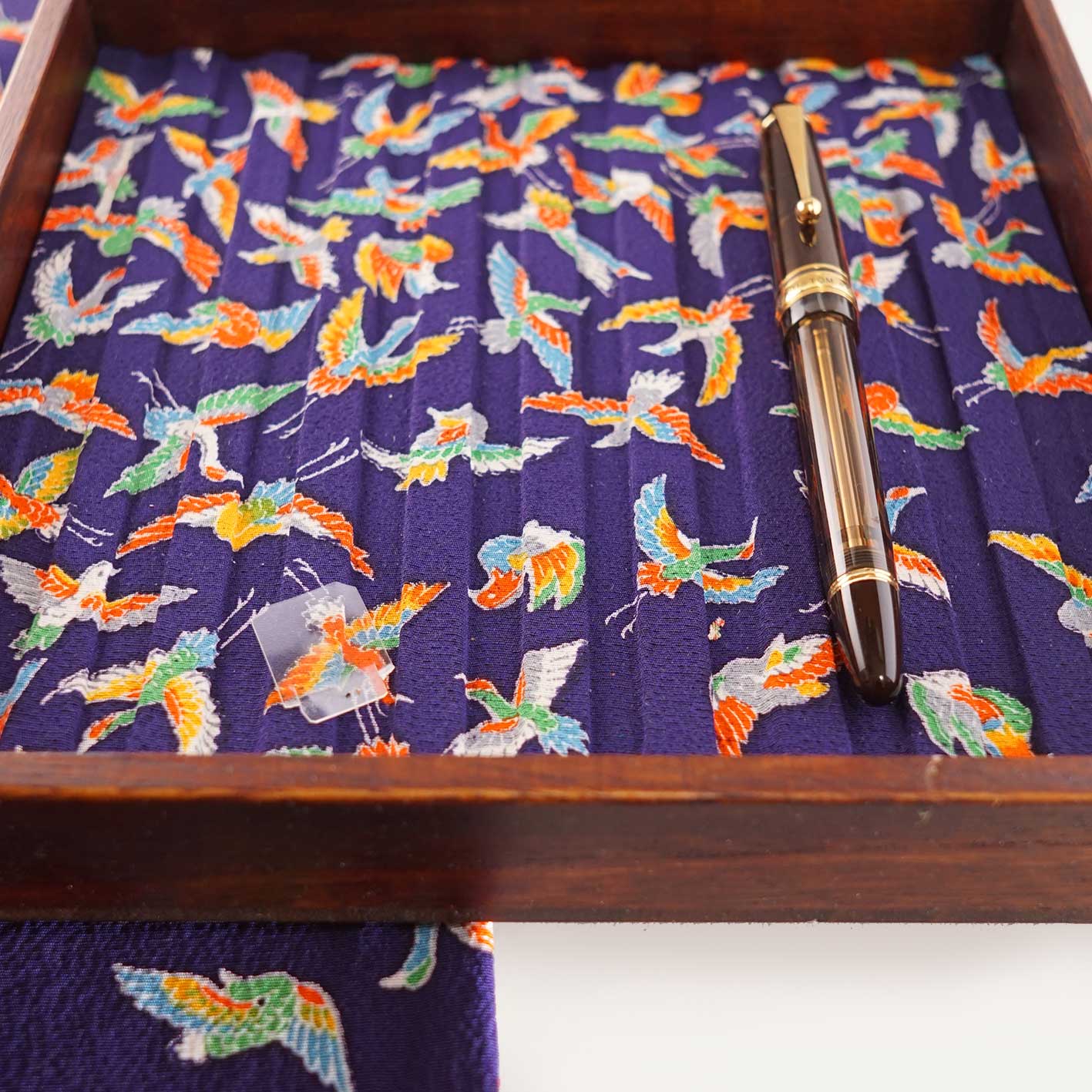Kiri (Paulownia wood) pen tray with vintage kimono insole.
